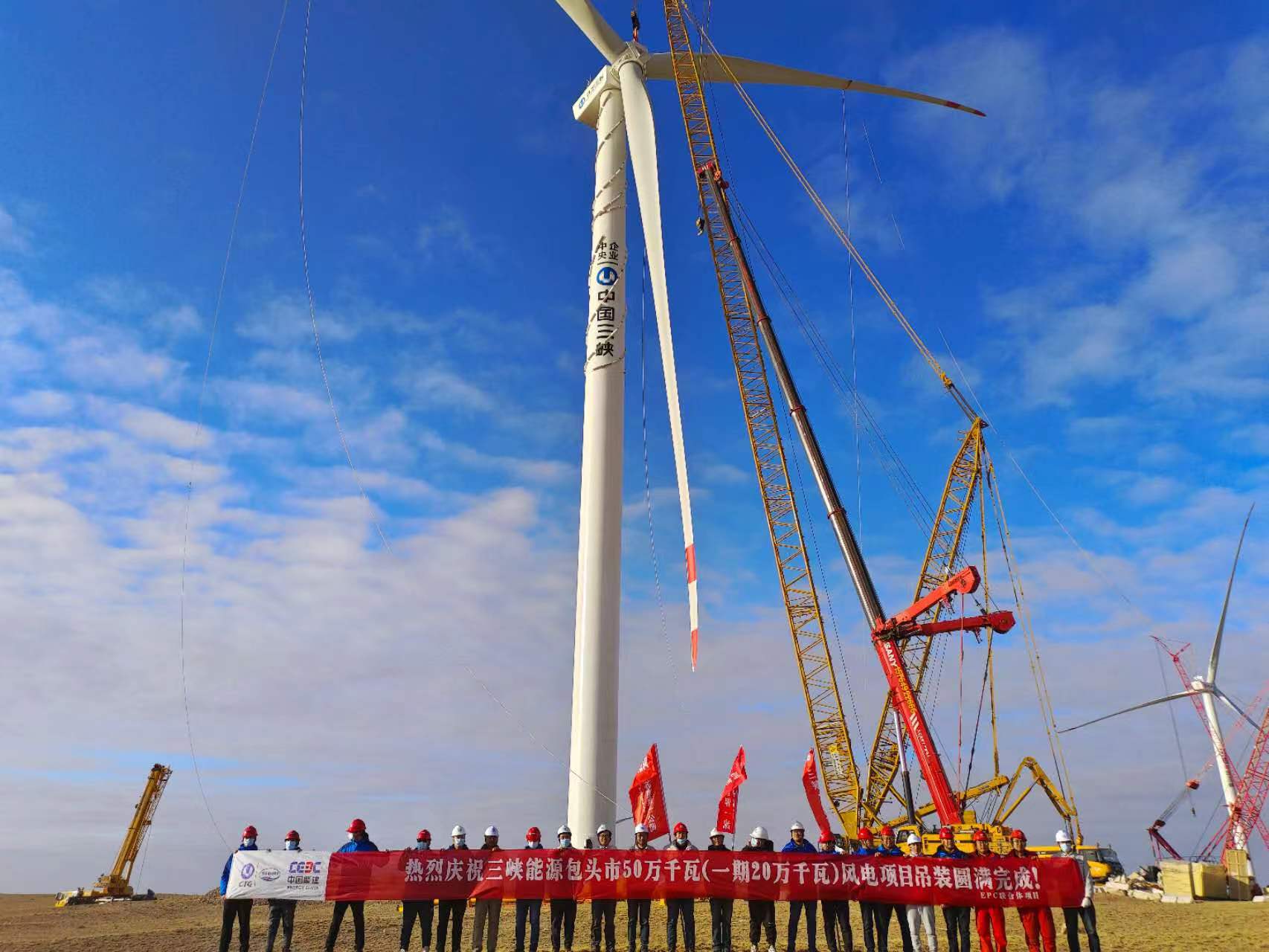 三峽能源內(nèi)蒙古包頭市可再生能源綜合應(yīng)用示范區(qū)1號50萬千瓦(一期20萬千瓦)共計31臺風(fēng)機全部吊裝完成,二期46臺風(fēng)機澆筑已完成37臺。項目部副經(jīng)理,楊峰感慨,2021年風(fēng)電、光伏等新能源發(fā)電量只占全年總發(fā)電量的11.8%,還有很大的提升空間,如今新能源產(chǎn)業(yè)順應(yīng)時代需求,正是投資風(fēng)口,前途一片光明。作為新能源行業(yè)的建設(shè)者,大有可為,作為一名共產(chǎn)黨員,將竭盡所能,從陸地到海洋,從平原到高山,從湖底到沙漠,從南疆到北國,為我國新能源產(chǎn)業(yè)發(fā)展貢獻(xiàn)一份力量。