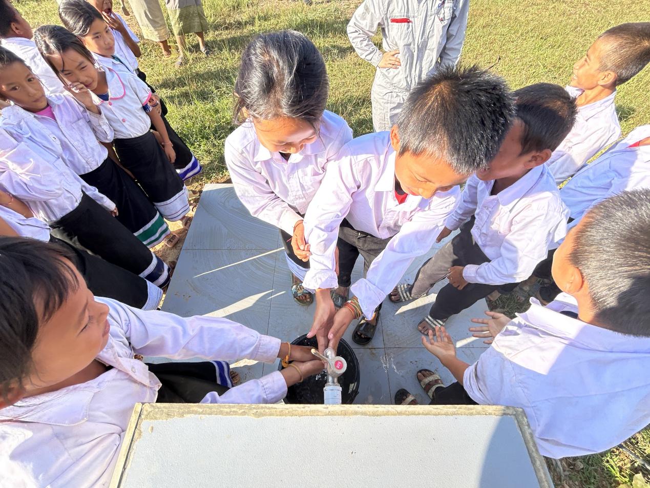 news在老撾北部群山環(huán)繞的喬家羅村,一場簡樸而熱烈的“出水儀式”在喬家羅村小學(xué)操場東北角舉行。當(dāng)清澈的地下水從井口噴涌而出時,圍觀的孩子們歡呼雀躍、捧水洗手,老師們雙手合十、連聲道謝,現(xiàn)場的掌聲與笑聲久久回響。
